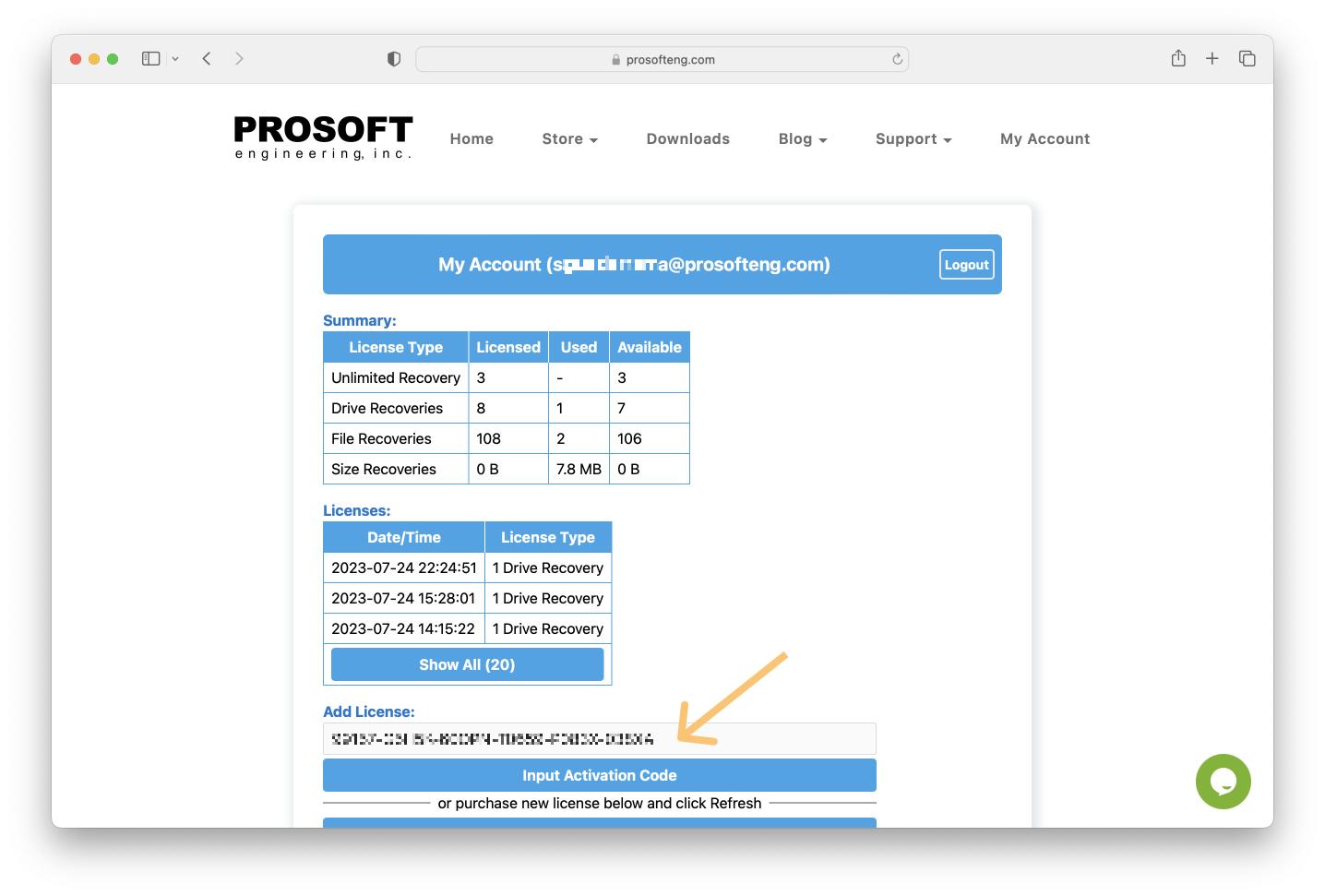 11. Selecting open “My Account” will display your portal and selecting Activate will authenticate the software. Once activated you can continue with the trial version or recovery if the license was purchased through our site. Go to step 13 if you have a key to add.
